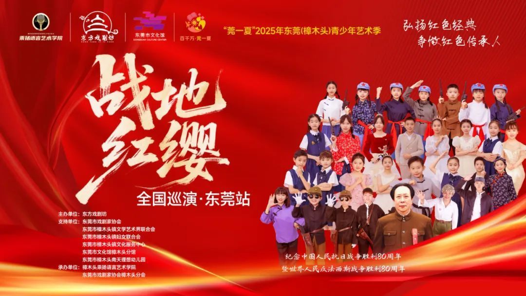 在中国人民抗日战争暨世界反法西斯战争胜利80周年之际,东莞市戏剧家协会樟木头分会于7月22日正式成立,并以大型红色公益儿童舞台剧《岭南烽火·红缨少年》(原《战地红缨》)首演献礼时代。活动以 “童真重构历史,红缨永续薪火”为主题,彰显东莞基层文艺组织的使命担当。